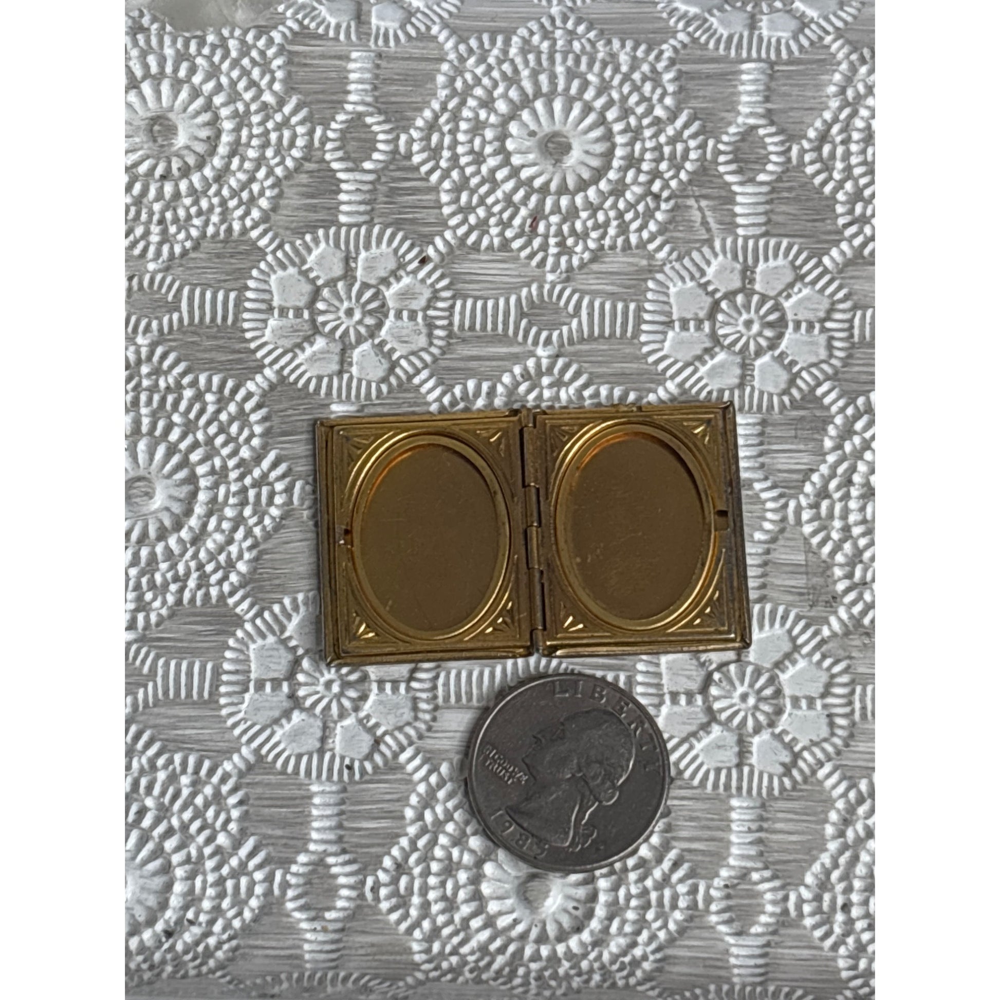 This antique book-style locket tells its story through every mark and faded edge. Once gleaming gold, it now carries the soft, weathered patina that only decades of handling and love can create. The front features delicately etched flowers and an oval frame, their details softened by time, creating a look that feels both romantic and real.