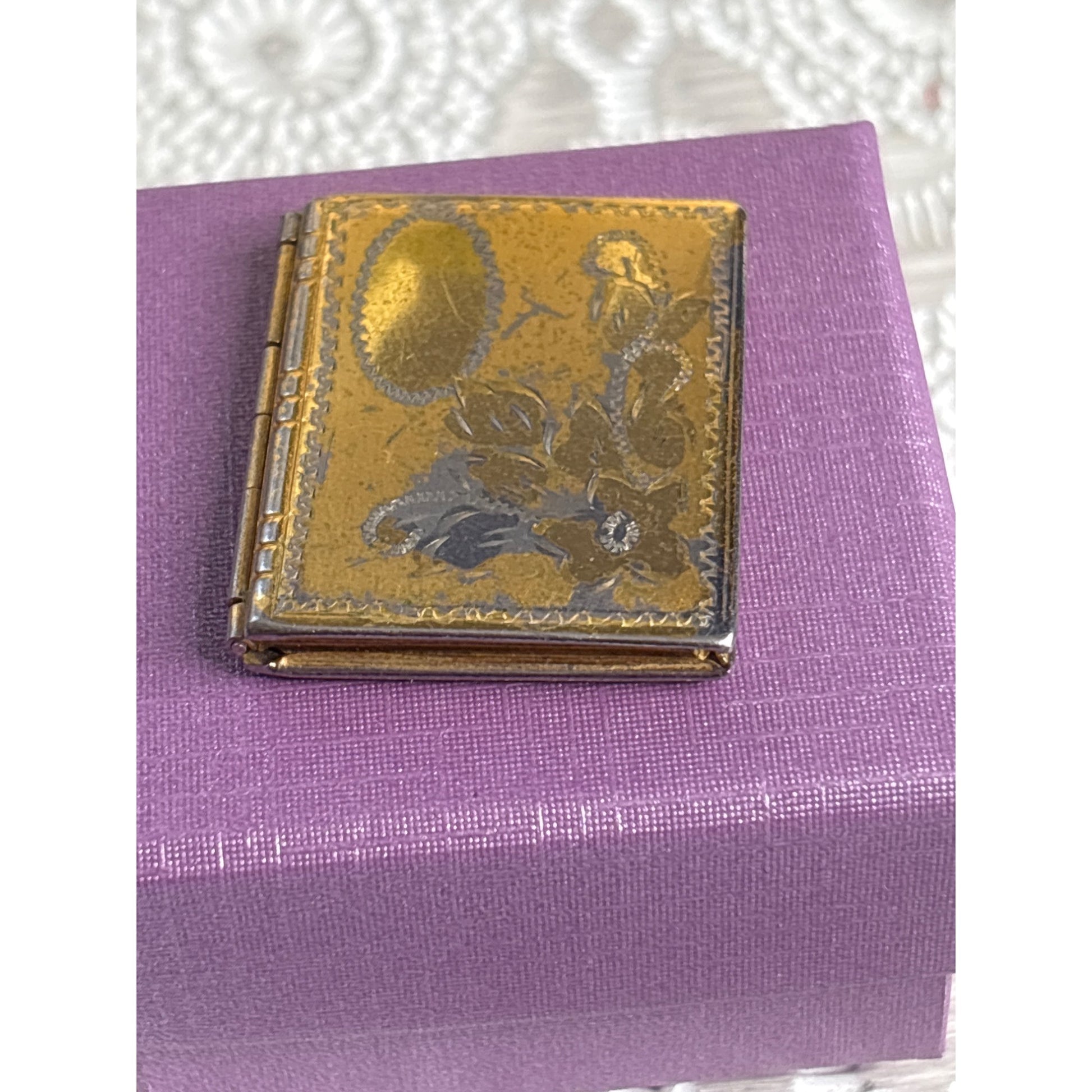Antique Gold-Tone Book Locket with Floral Etching — Timeworn Patina & Vintage Charm