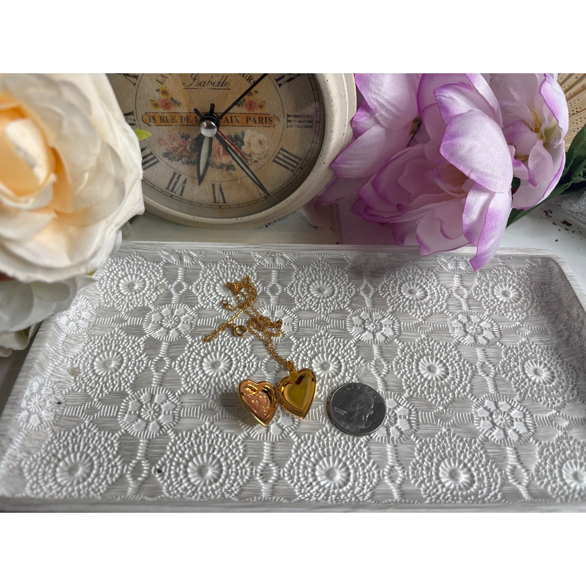 Gold Tone Heart Locket Necklace With Floral Engraving & Chain In Gift Box