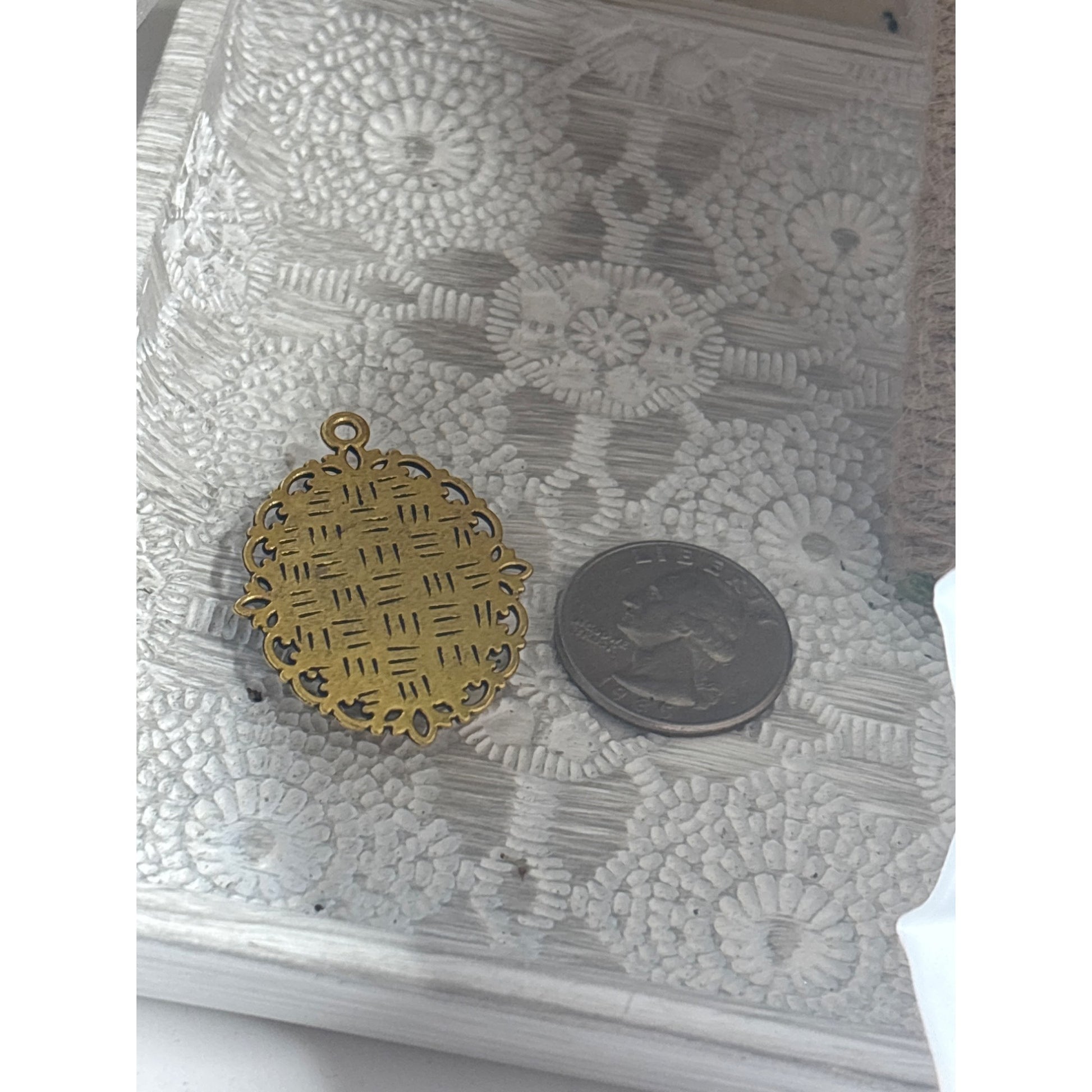 Backside shows minor patina consistent with brass material's natural aging. Measurements: 1.5 inches top to bottom, 1 inch side to side.