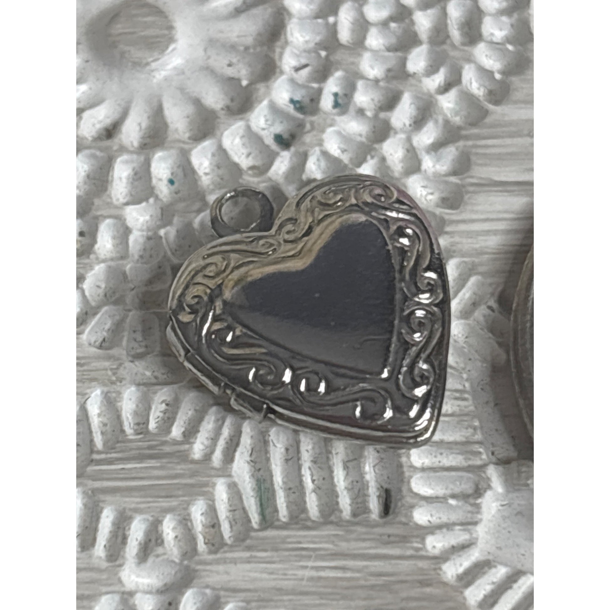 Heart-Shaped Silver-Tone Locket Pendant With Scroll Pattern Border Hinged Opening Small Size Gift Box Included