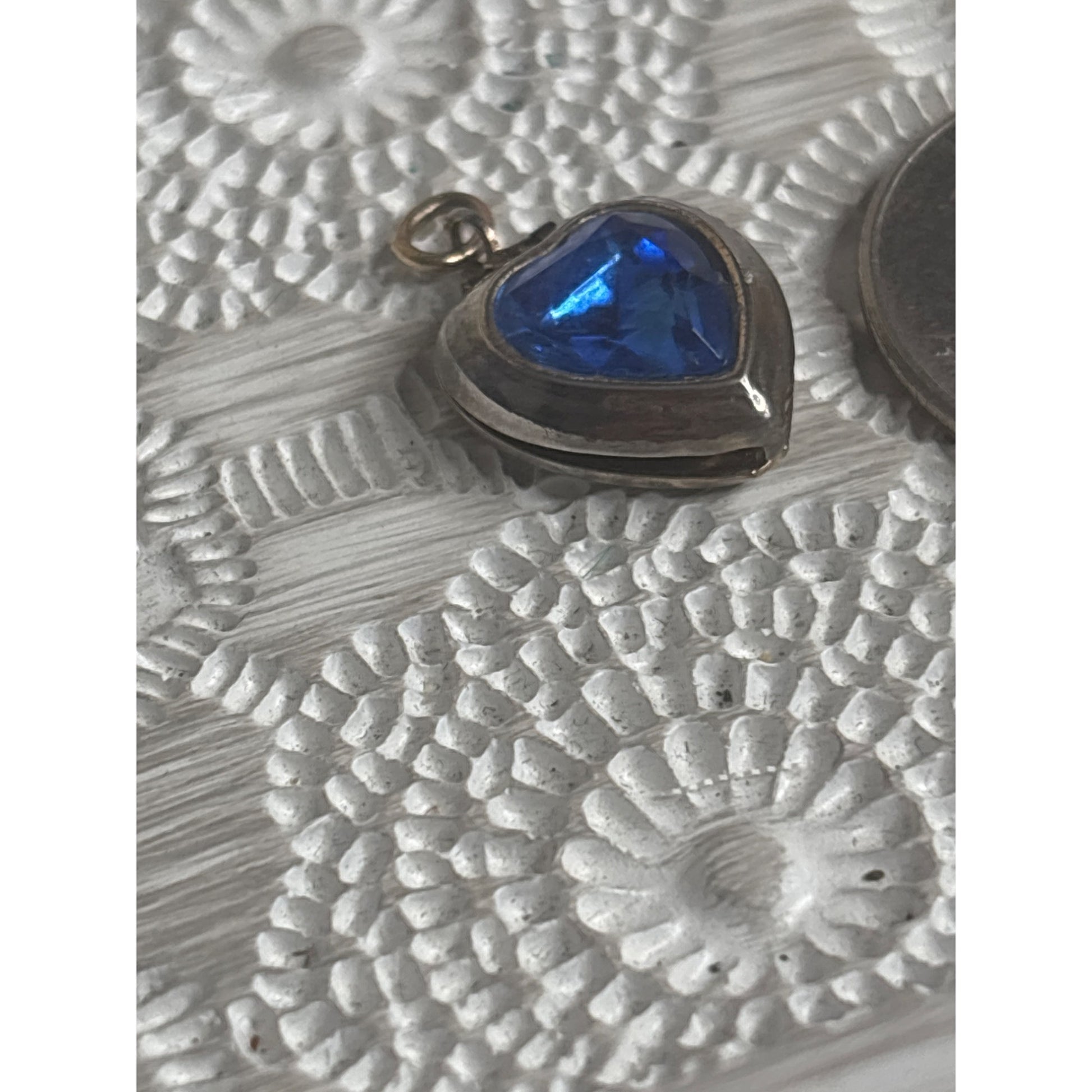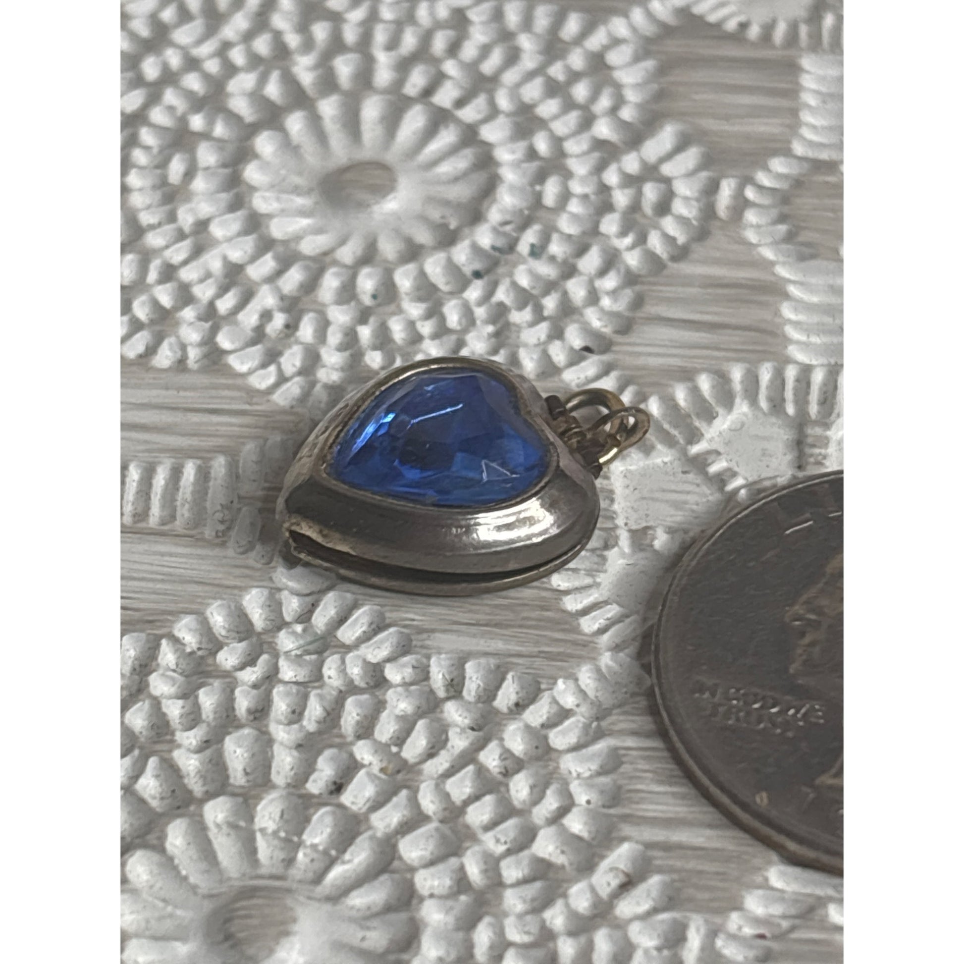 This vintage locket showcases timeless elegance with its heart-shaped design and vibrant blue glass centerpiece.