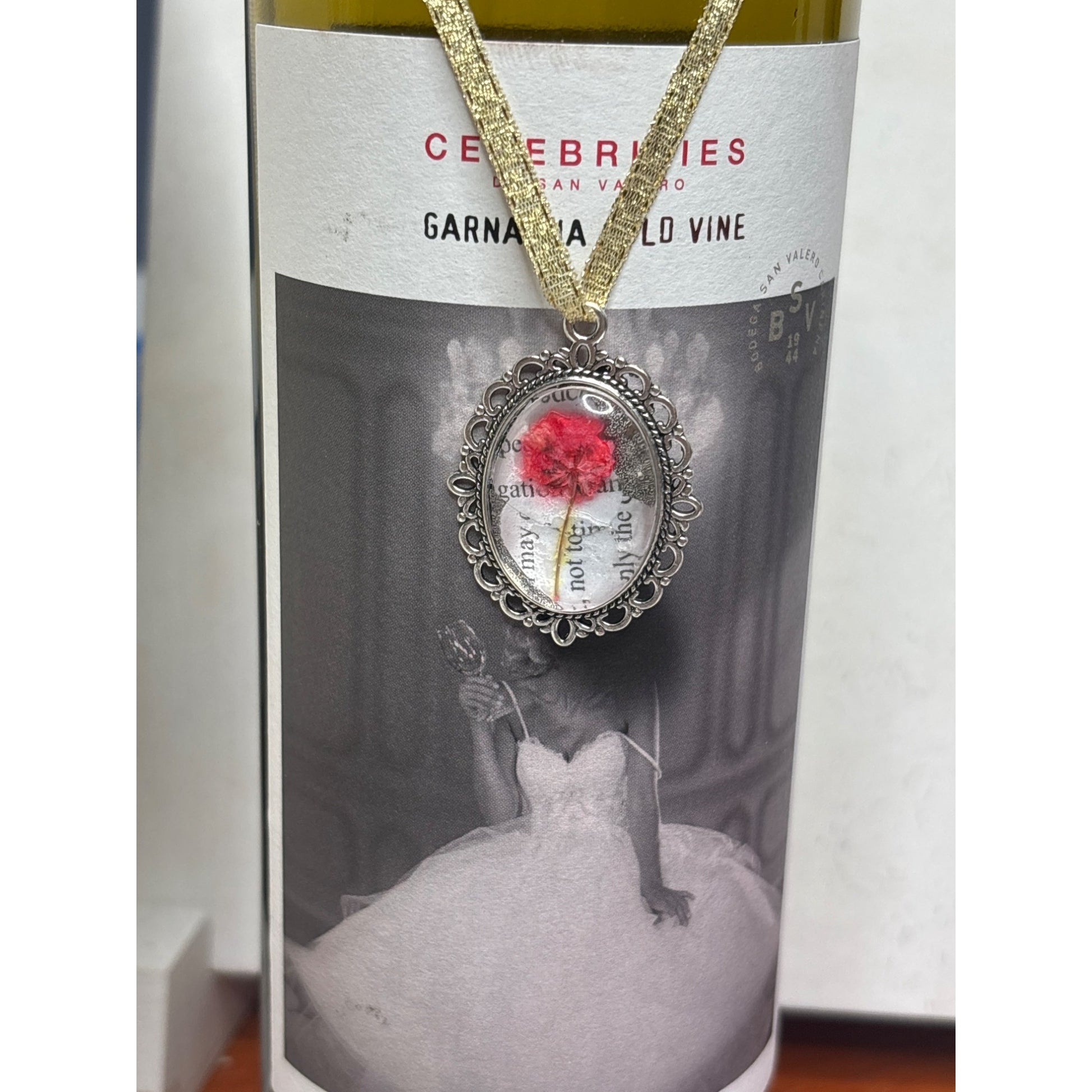 Pressed Flower Pendant with Vintage Book Words – Recycled Literary Keepsake Necklace, Custom Memorial Jewelry