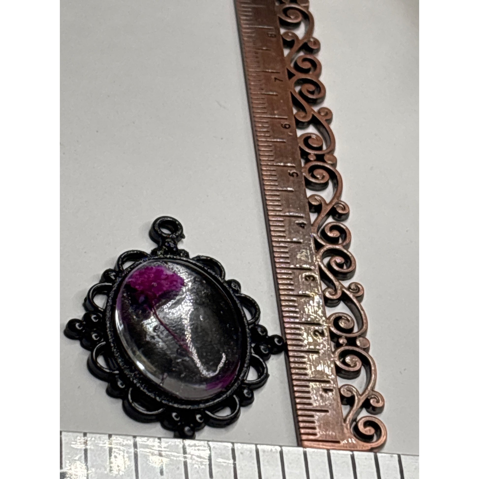 Real Pressed Pink Flower Encased in Resin; Black Pendant with 18" Chain