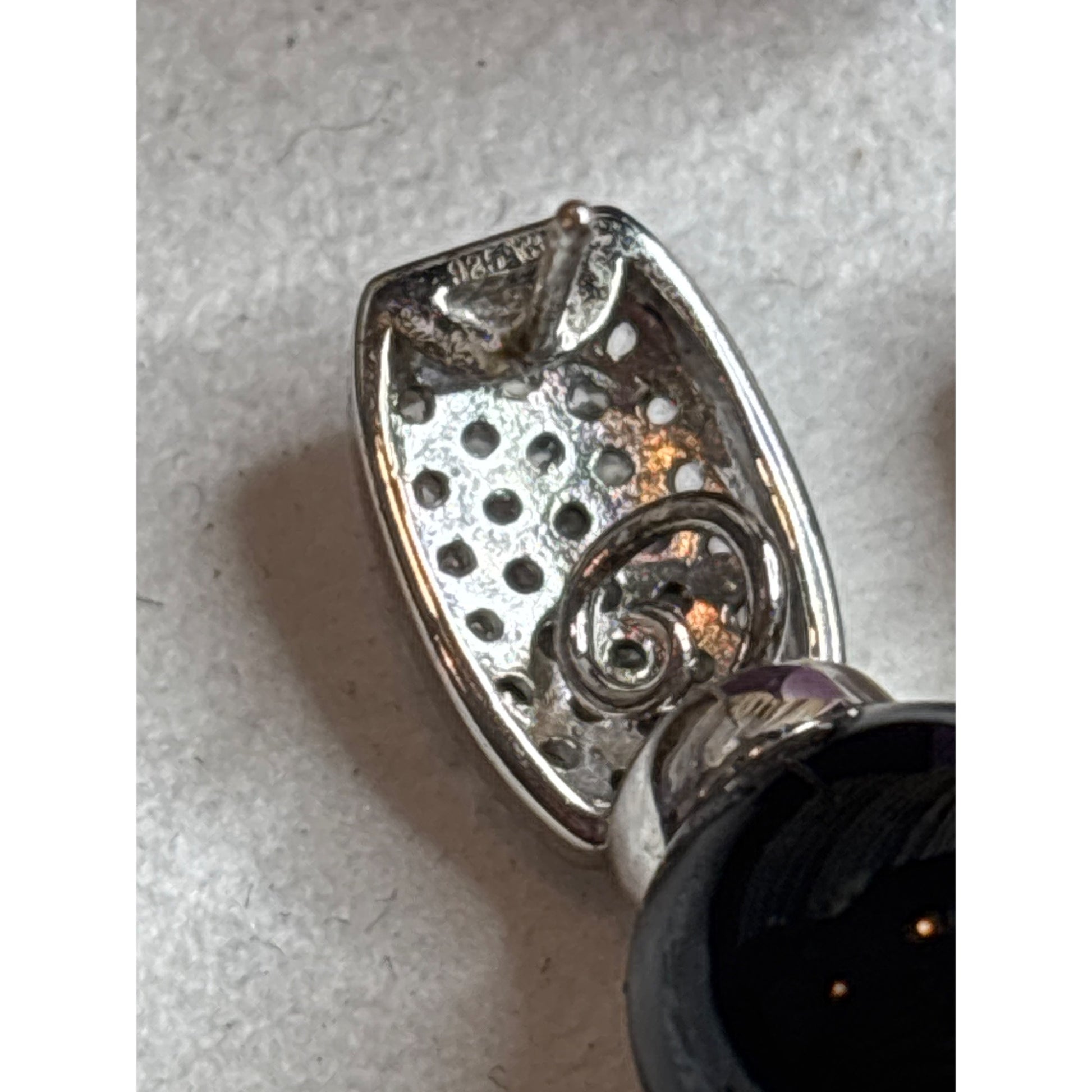 Adorned with a striking vintage charm, these sterling silver 925 earrings showcase a black onyx drop complemented by shimmering pave crystal accents.