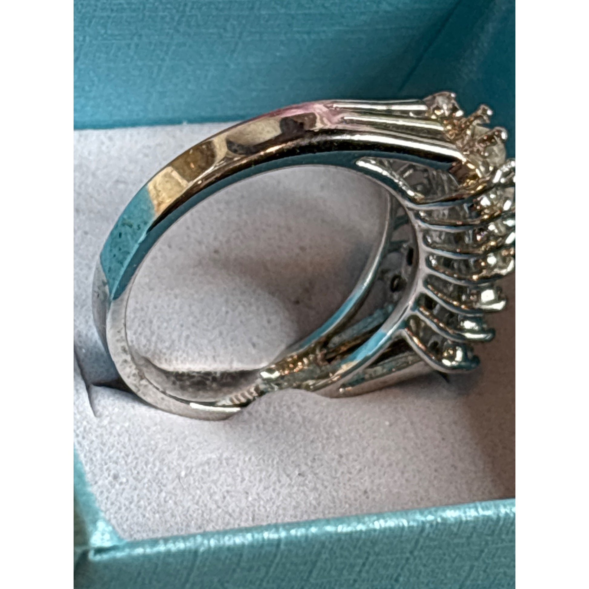 Vintage Silver Tone Multi-Row Rectangle Rhinestone Ring With Gift Box