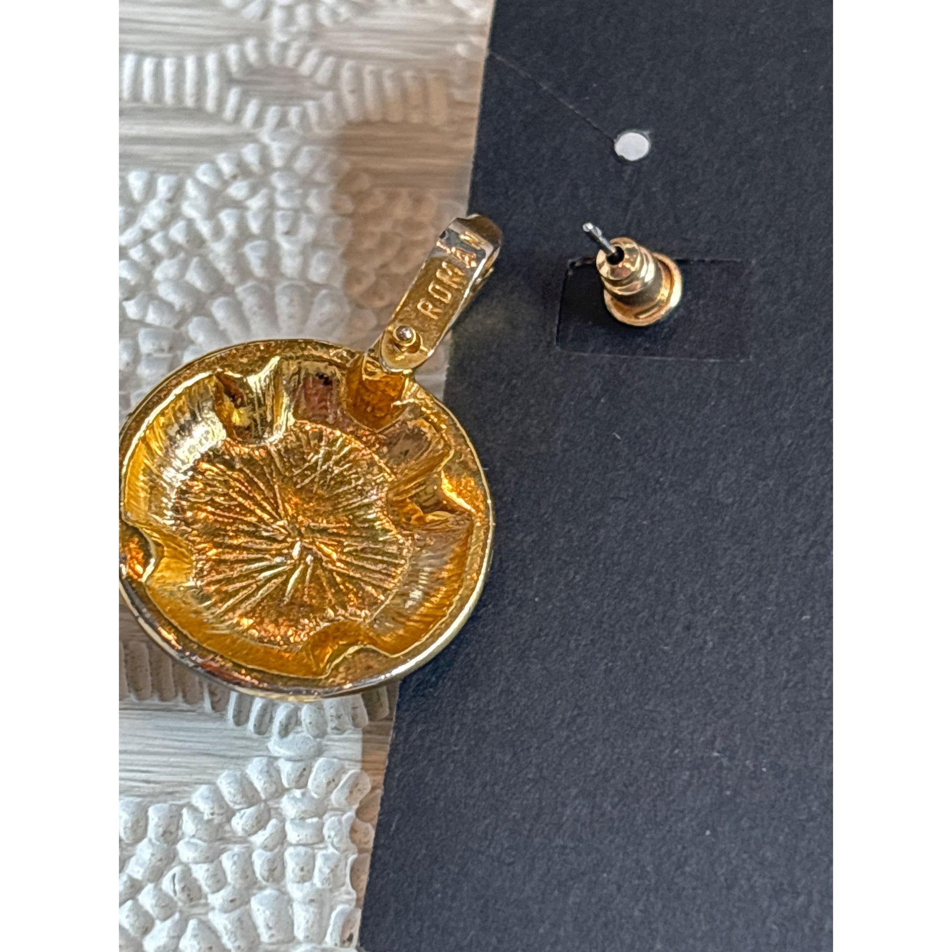 Earring back shows minor wear. Necklace pendant top to bottom = 1 inch.