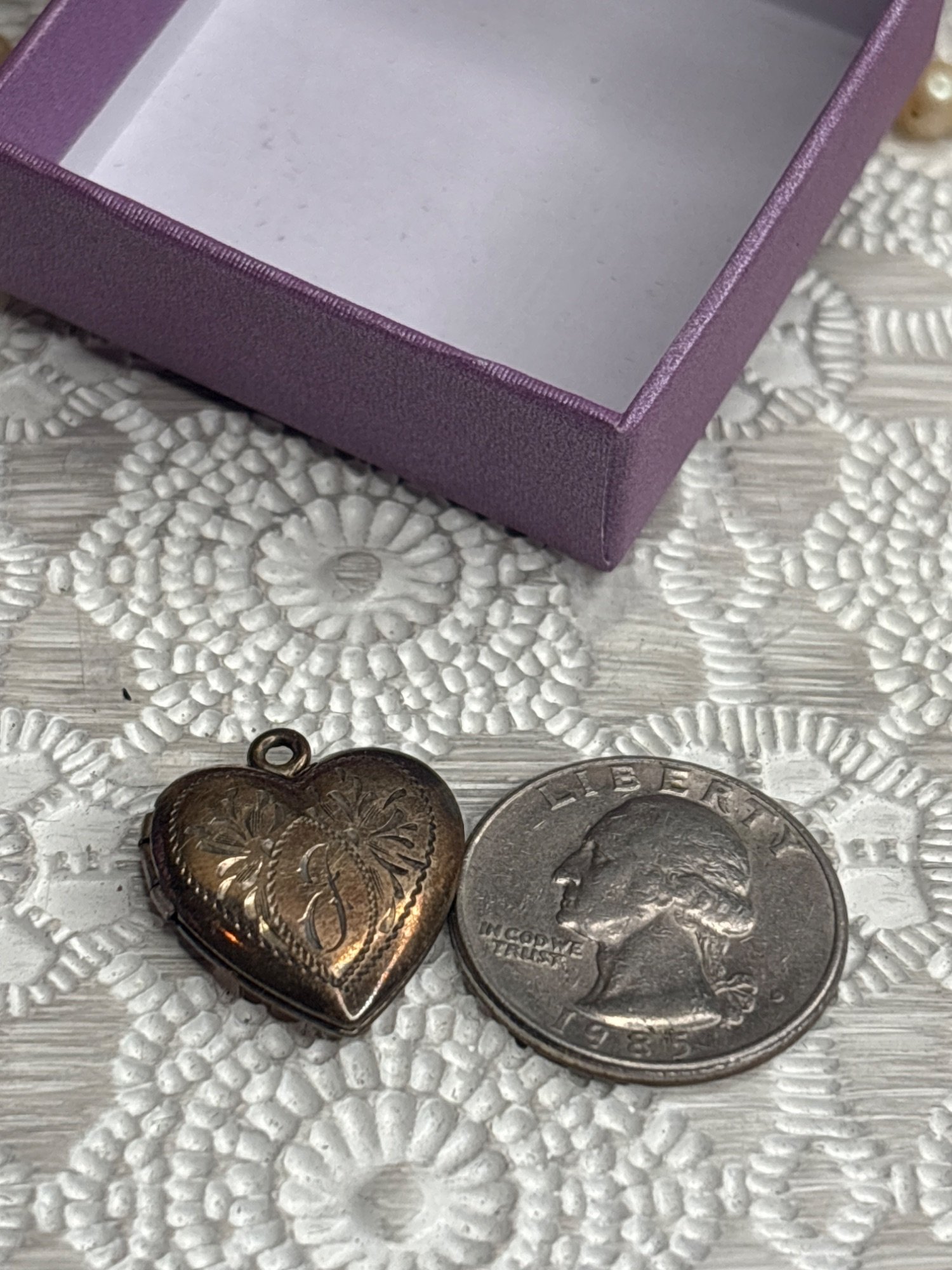 12K GF Sterling Vintage Heart-Shaped Locket Engraved KJ & I Love You