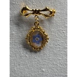 Bridal Bouquet Brooch: Gold-Plated Vintage Brooch With Real Pressed Forget-Me-Not