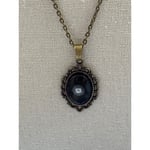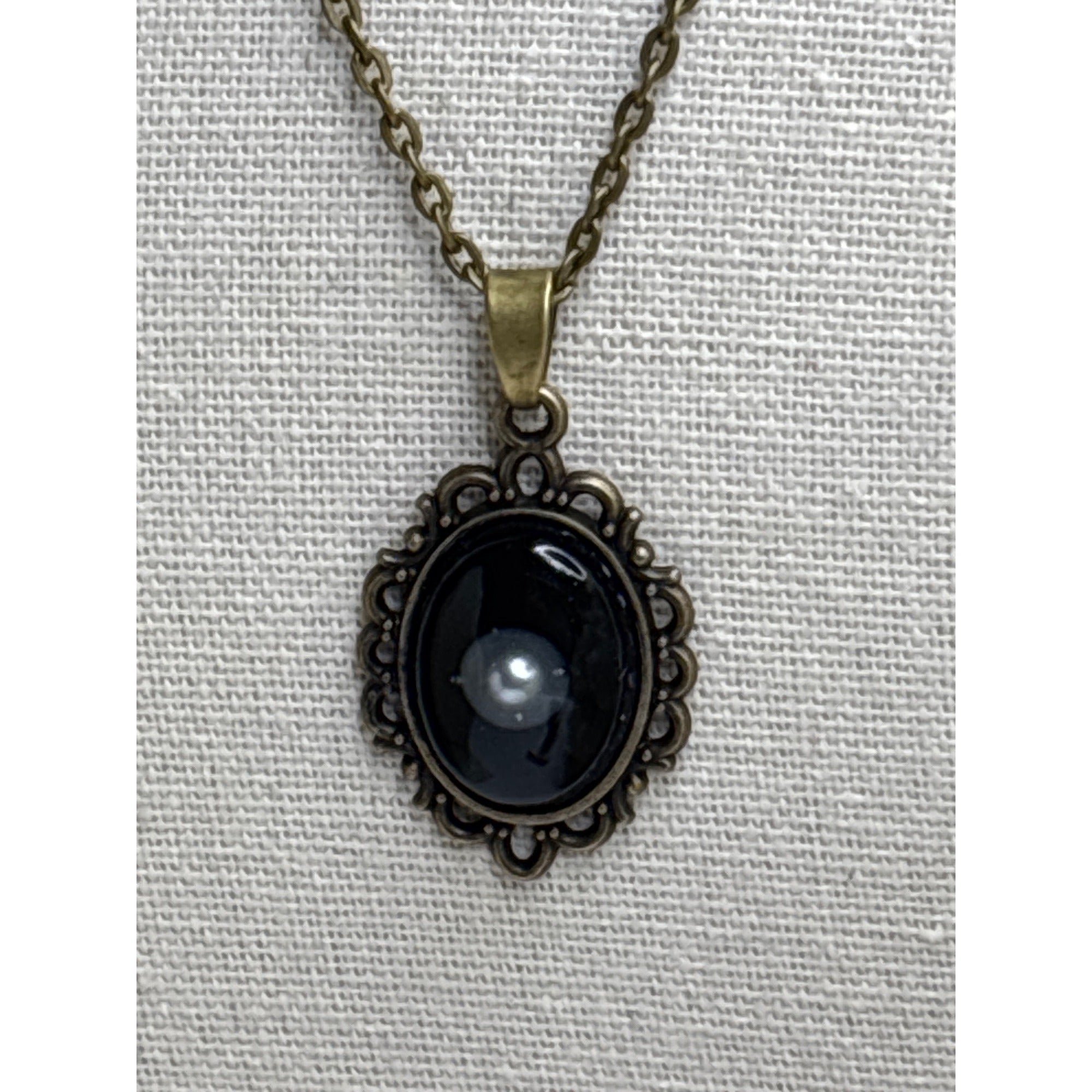 Floating Pearl Pendant Oval Black Background: Handmade in San Diego