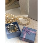 This brooch features a delicate arrangement of forget-me-not flowers encased in a silver-tone frame with intertwined doves, symbolizing love and remembrance.• Measures 25mm x 18mm • Pin backing for secure attachment • Ideal for bridal bouquets or as a personal keepsake • Lightweight and elegantly crafted25mm x 18mm