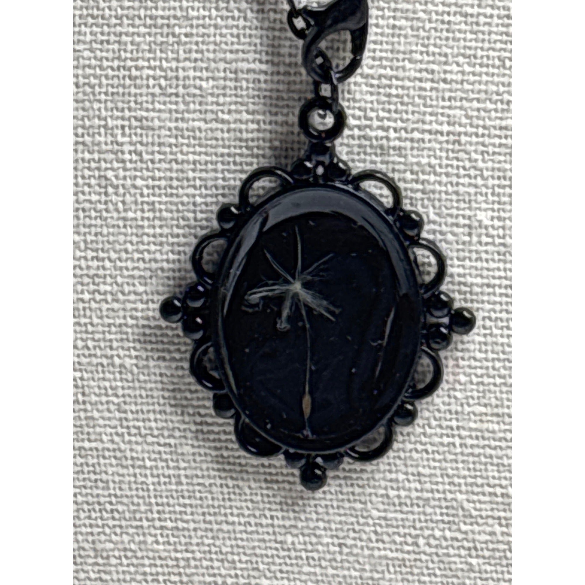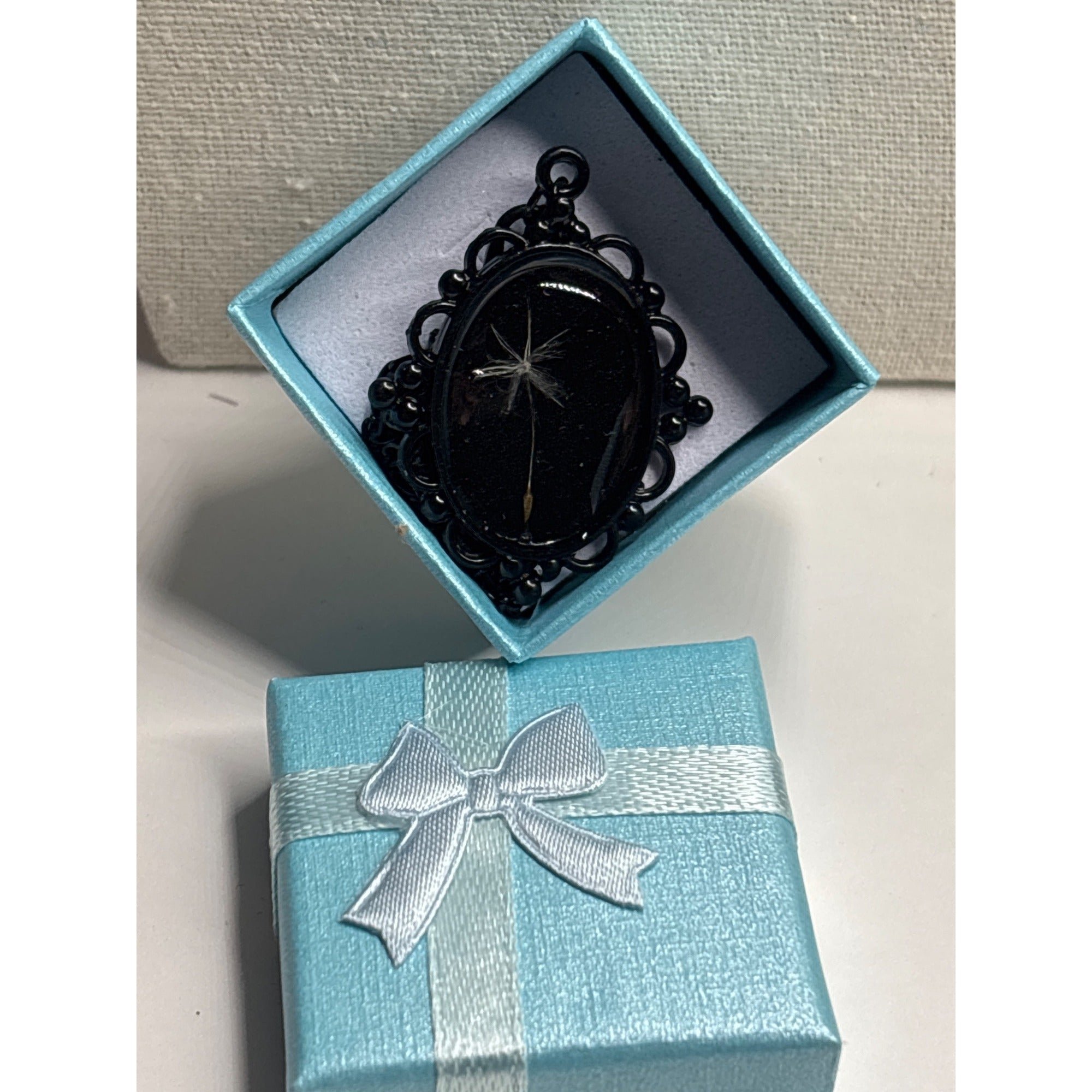 Each piece from Reimagined by the Chateau is thoughtfully created using mixed metals and curated vintage elements. Your item may include any number of meaningful materials such as pressed flowers, dandelion seeds, old book pages, faded photographs, vintage postage stamps, greeting cards, or other pieces of rescued ephemera. Because every component has lived a life before this one, minor quirks and imperfections are natural and add to its one-of-a-kind charm.Please review all photos carefully. All items are sold as is.Item Type☐ Pendant NecklaceComponents Included☐ Dandelion Seeds☐ Mixed Metal Pendant: 18x25☐ Resin☐ Chain Included: 18" DescriptionHandmade with care in San Diego, this piece was created by blending modern craftsmanship with vintage, storied materials. Every element is chosen to celebrate memory, meaning, and beauty—from the soft texture of paper saved from forgotten drawers to the delicate petals pressed from real flowers.Because this is a handcrafted item incorporating vintage components, slight imperfections may be present. These are part of the piece’s authentic character and make it truly unique.Care InstructionsPlease treat your handmade piece with care:• Avoid submerging in water• Avoid prolonged sun exposure• Handle gently to preserve embedded materials• Store in a cool, dry placePackagingEvery item arrives gift-boxed and beautifully packaged, ready for giving or keeping.