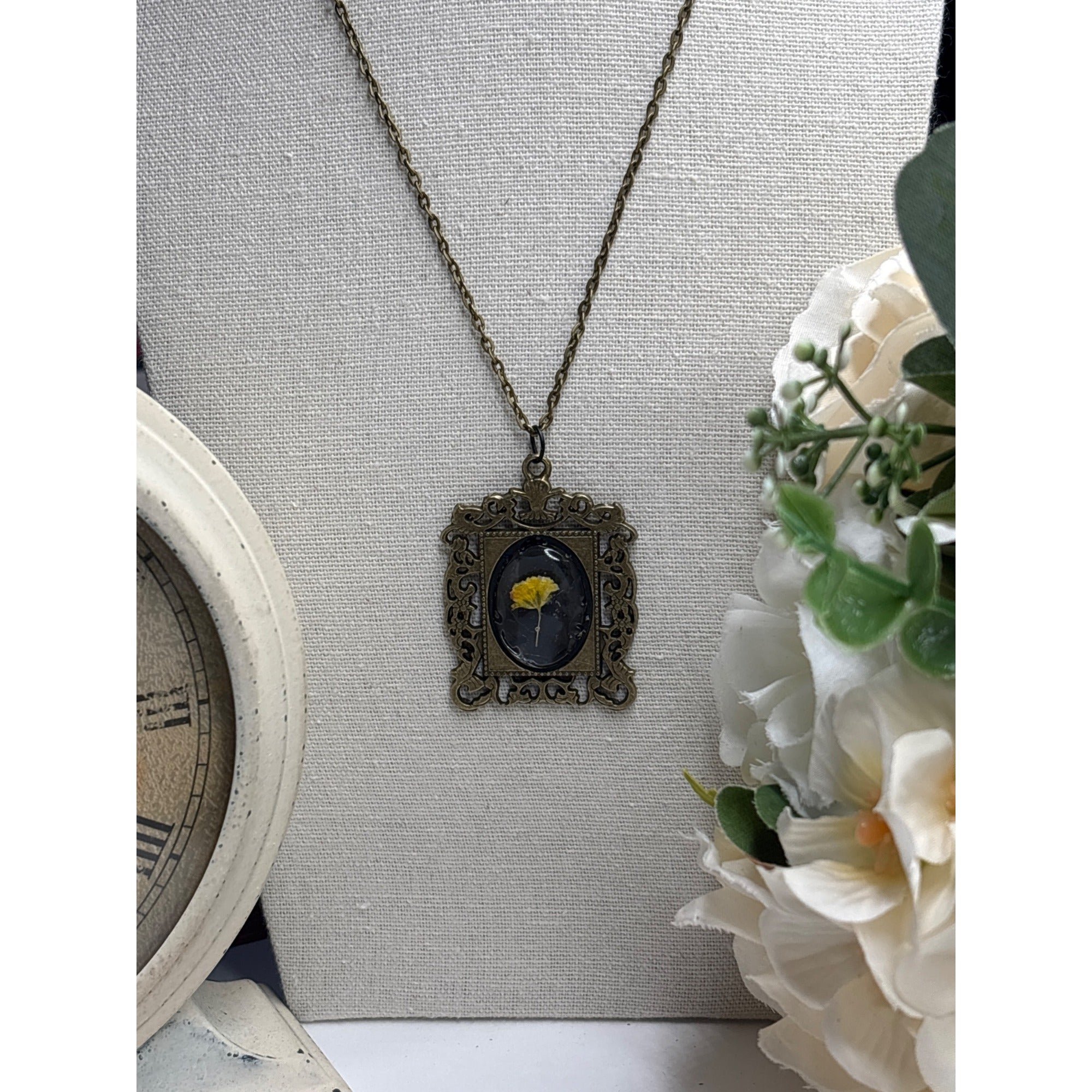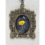 Ornate Pendant with Real Pressed Yellow Flower Bridal Bouquet Mourning Jewelry