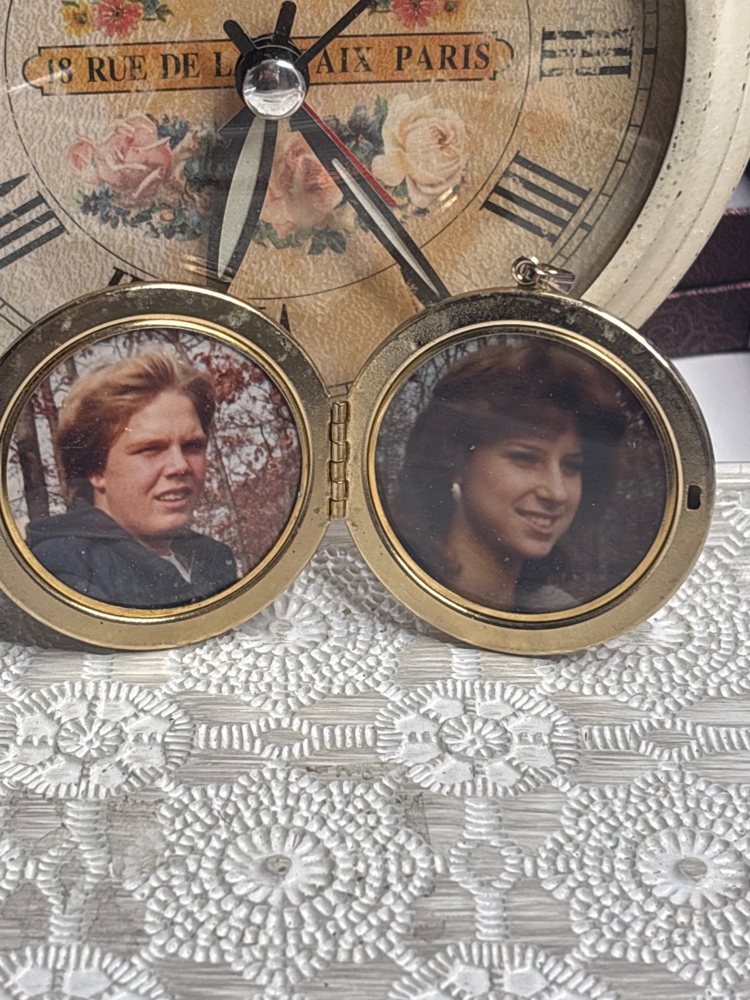 Photo Keepsake Locket: Unique Design + Original Photos (1980's Senior Photos?)