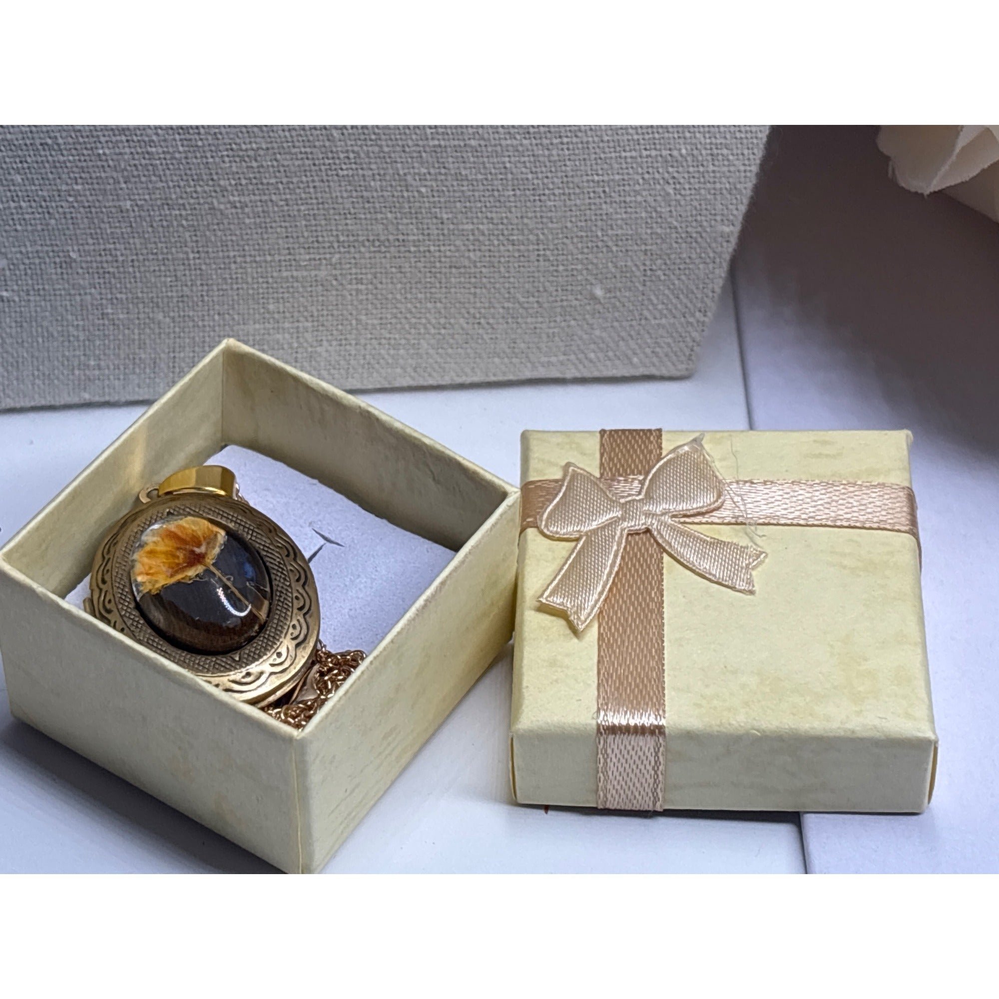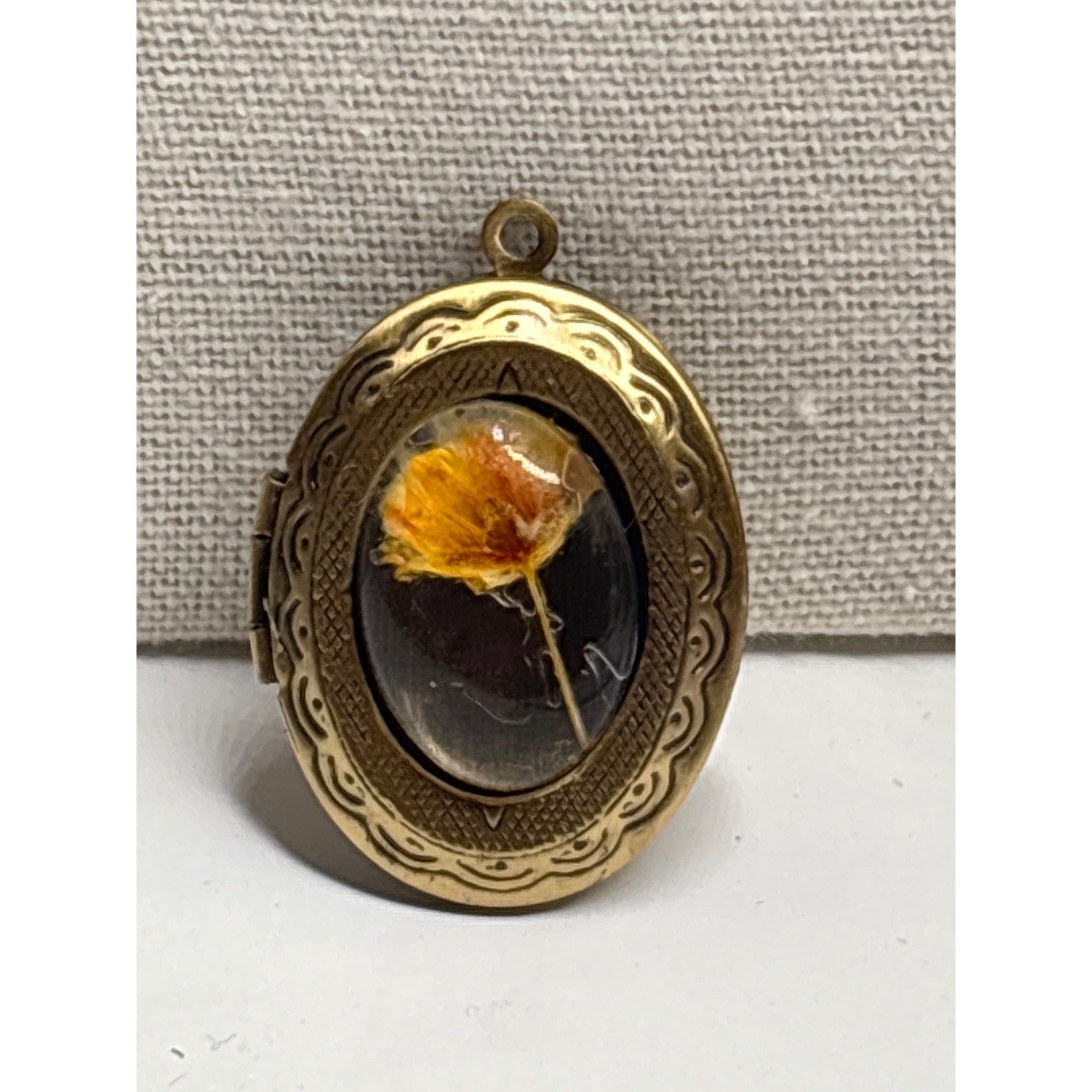 Each piece from Reimagined by the Chateau is thoughtfully created using mixed metals and curated vintage elements. Your item may include any number of meaningful materials such as pressed flowers, dandelion seeds, old book pages, faded photographs, vintage postage stamps, greeting cards, or other pieces of rescued ephemera. Because every component has lived a life before this one, minor quirks and imperfections are natural and add to its one-of-a-kind charm.Please review all photos carefully. All items are sold as is.Item Type☐ Bridal Bouquet Charm☐ Mourning Jewelry☐ Reimagined Locket☐ Pendant NecklaceComponents Included☐ Pressed Flowers☐ Mixed Metals☐ Resin☐ Chain Included: 18"DescriptionHandmade with care in San Diego, this piece was created by blending modern craftsmanship with vintage, storied materials. Every element is chosen to celebrate memory, meaning, and beauty—from the soft texture of paper saved from forgotten drawers to the delicate petals pressed from real flowers.Because this is a handcrafted item incorporating vintage components, slight imperfections may be present. These are part of the piece’s authentic character and make it truly unique.Care InstructionsPlease treat your handmade piece with care:• Avoid submerging in water• Avoid prolonged sun exposure• Handle gently to preserve embedded materials• Store in a cool, dry placePackagingEvery item arrives gift-boxed and beautifully packaged, ready for giving or keeping.
