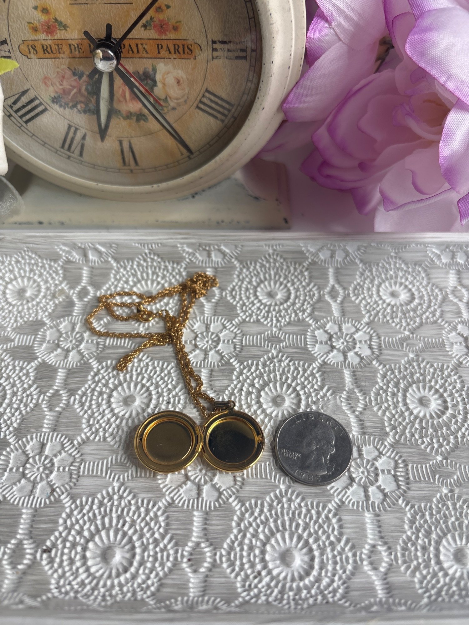 A delicate golden locket whispers tales of bygone elegance, carefully crafted with intricate engraving and suspended on a refined chain. This timeless piece captures the romantic essence of vintage jewelry, inviting the wearer to hold cherished memories close to their heart.