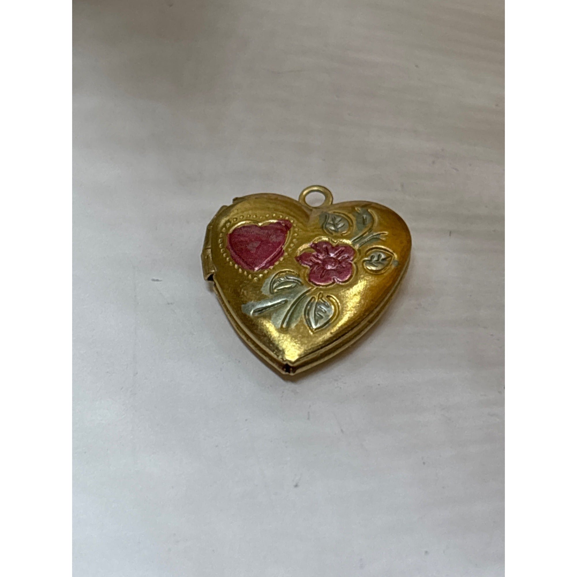 Pink & Green Painted Floral Heart Locket | Gold | Valentine | Doll Size