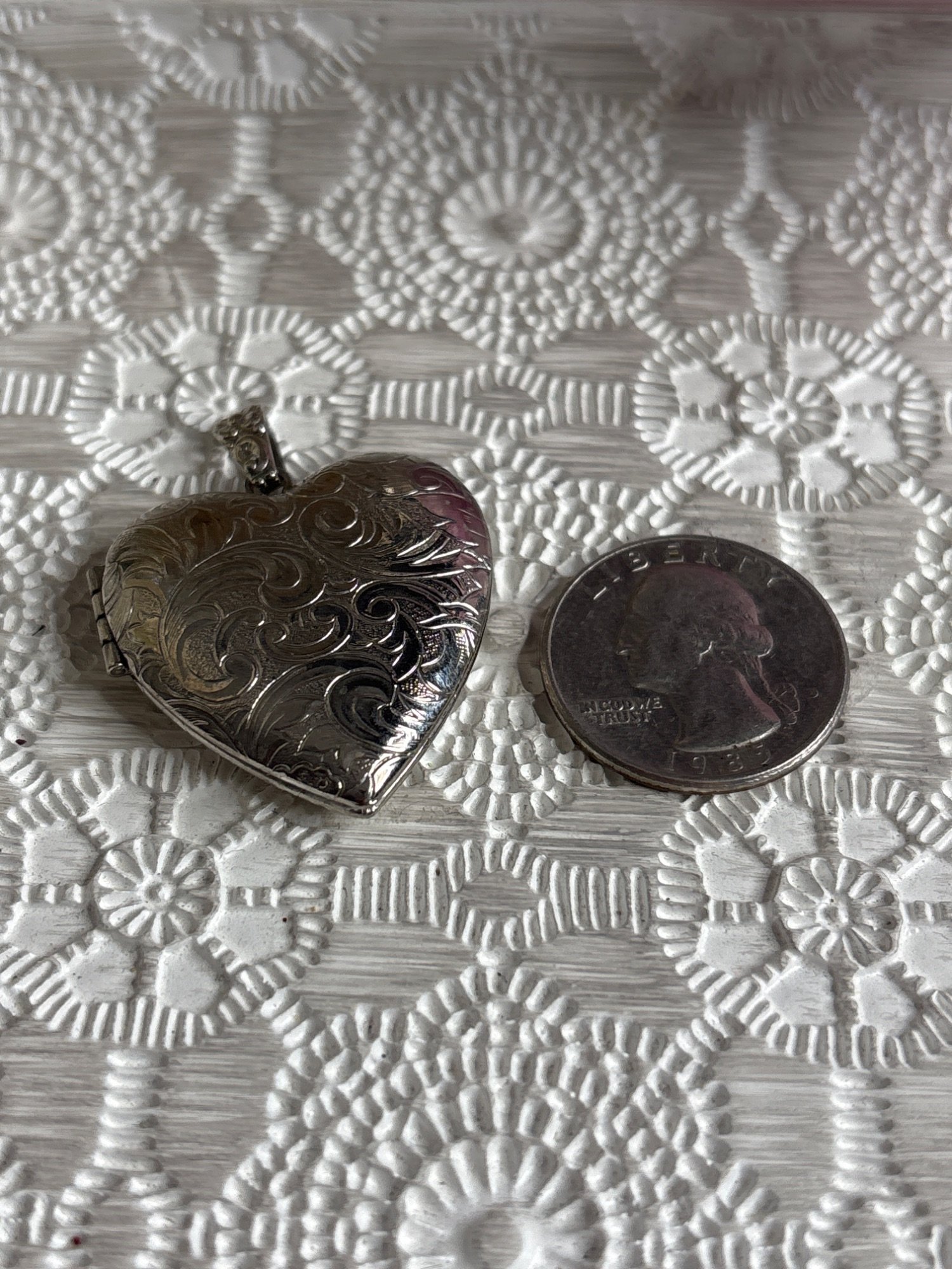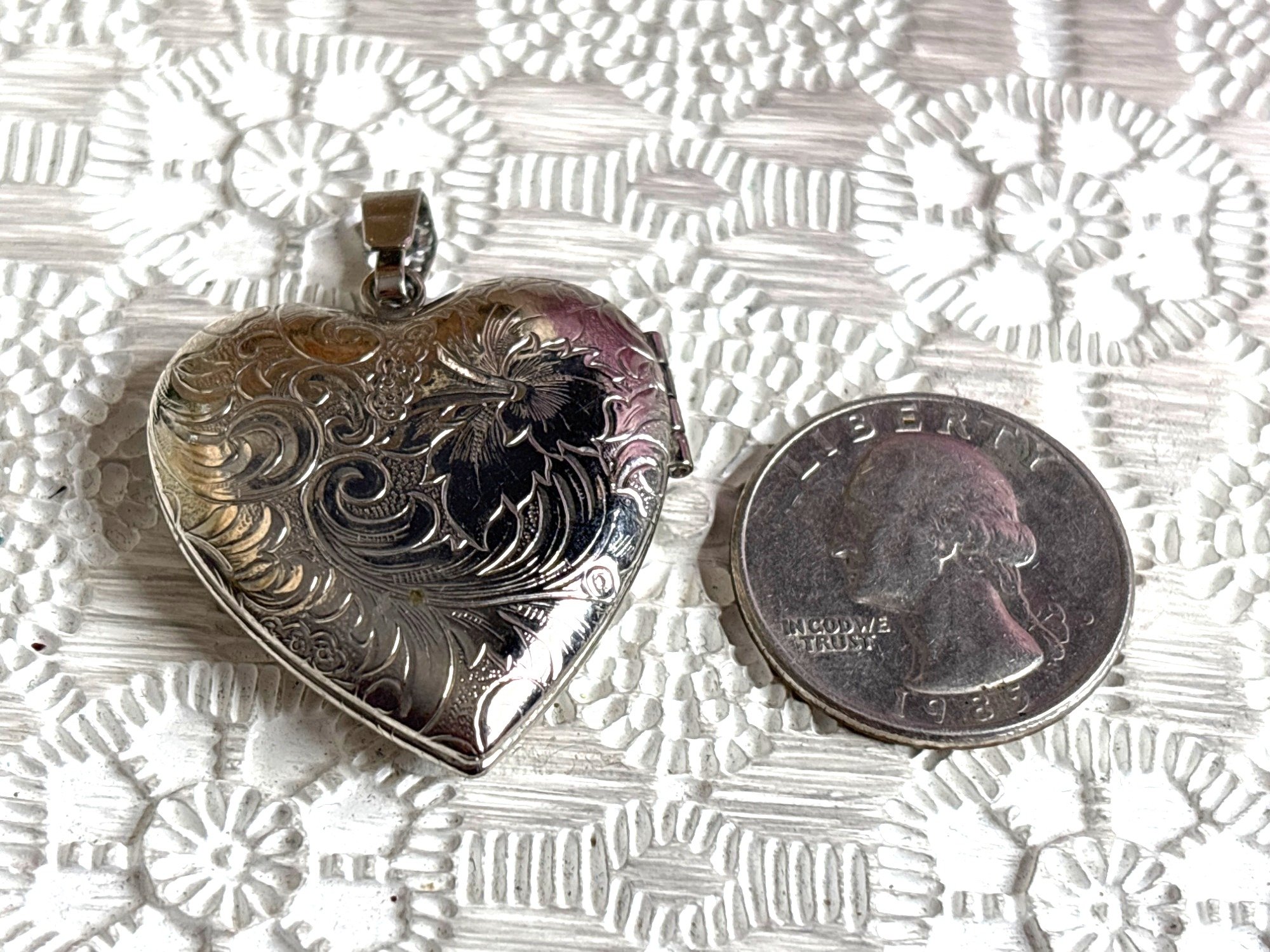 Romantic Photo Keepsake: Memory Locket Heart Shaped Intricate Engraving
