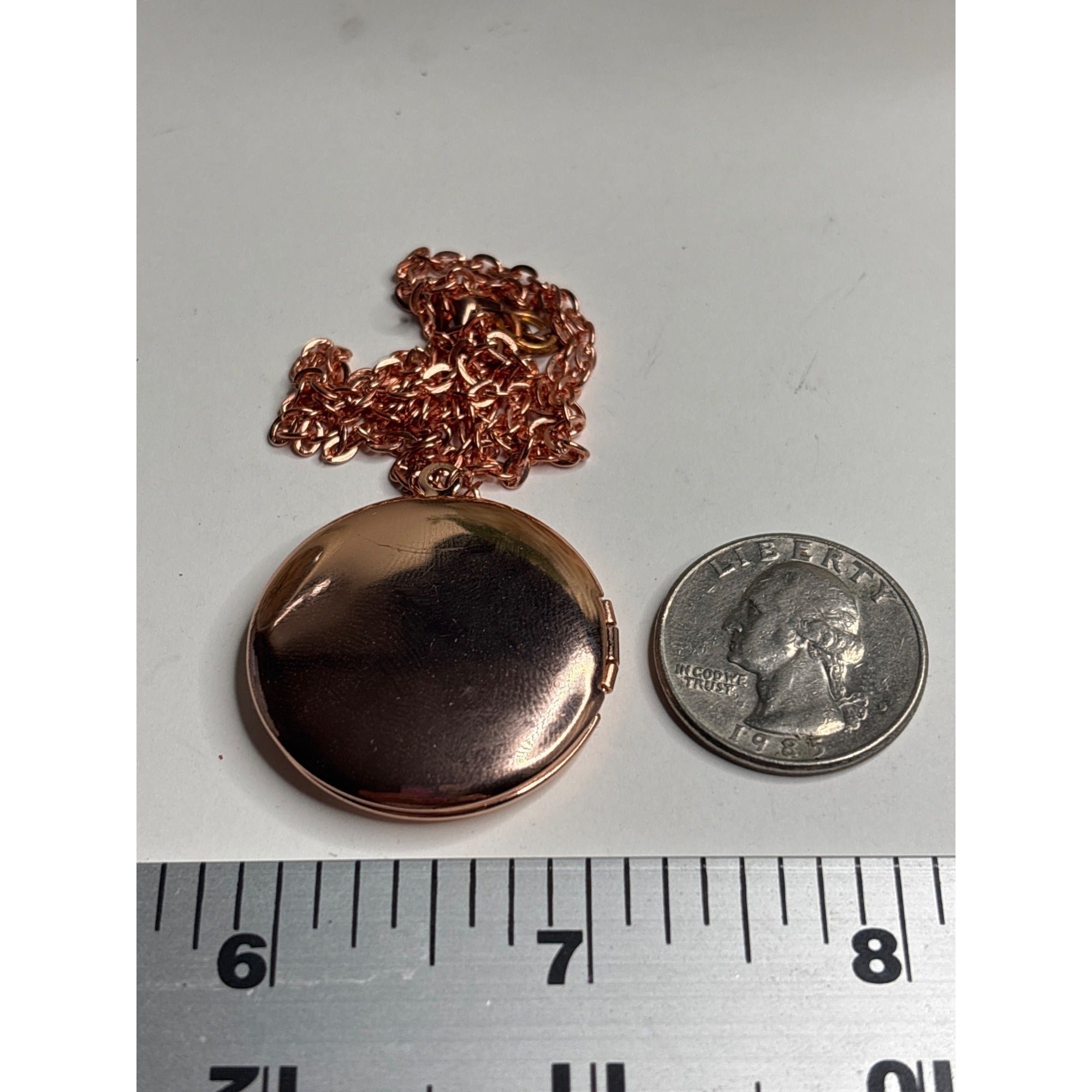 This is a rose gold photo locket with a matching 16" chain. The art is handpainted and sealed. The locket size is 25mm. Each piece in the Reimagined by the Chateau collection is lovingly curated from auctions and estate sales across the country. We seek out jewelry with history, patina, charm, and soul—pieces that feel like they’ve been waiting for their next chapter.Hand-selected and offered exactly as found, every item preserves its unique age, quirks, and character. Please review all photos carefully, as vintage pieces may show gentle wear that adds to their one-of-a-kind story.Your piece will arrive carefully wrapped in a gift box—ready for giving or treasuring.Curated with love in San Diego, CA.🛠 Care NotesVintage and handmade pieces should be handled gently.Avoid moisture, perfumes, and prolonged sunlight to preserve the finish and detailing.