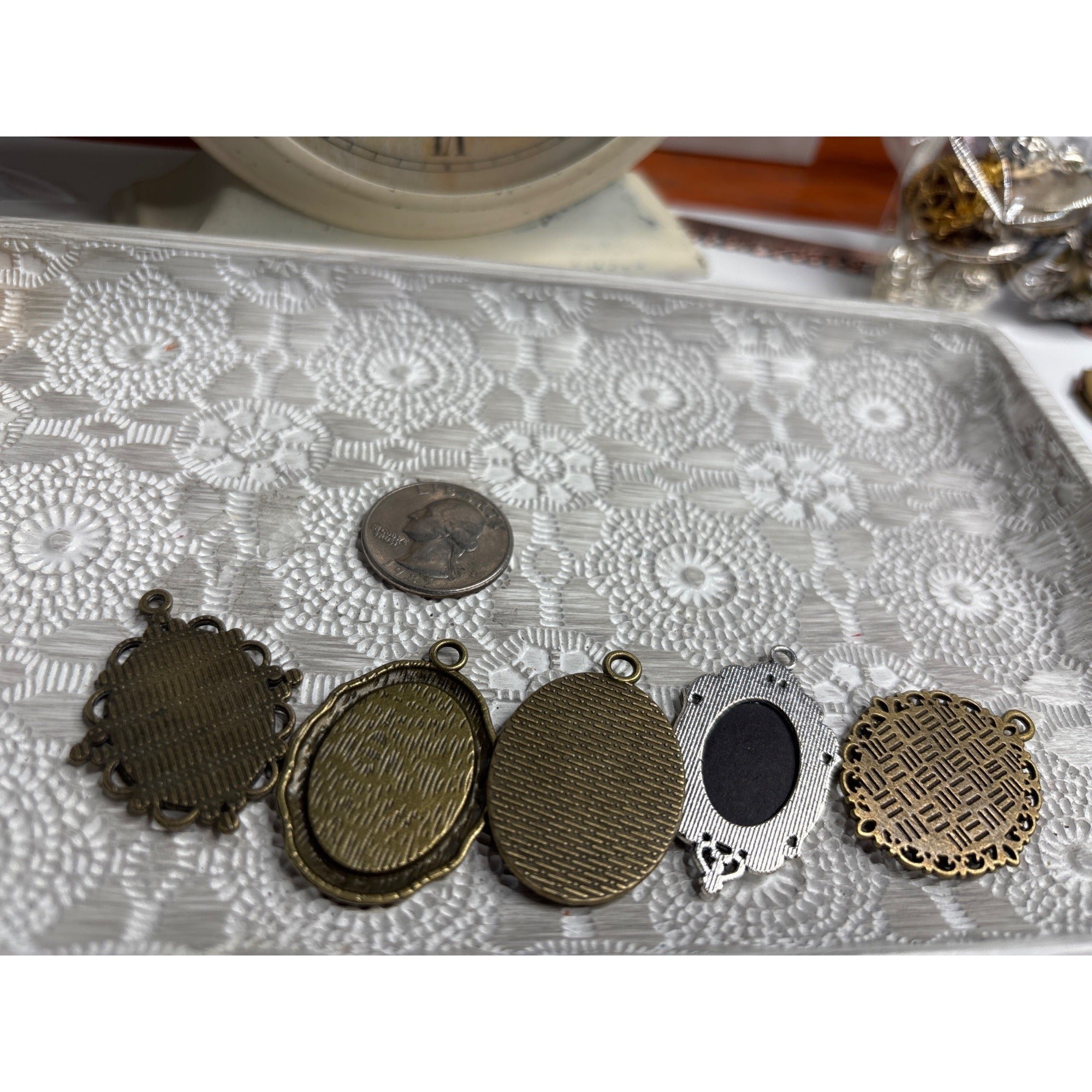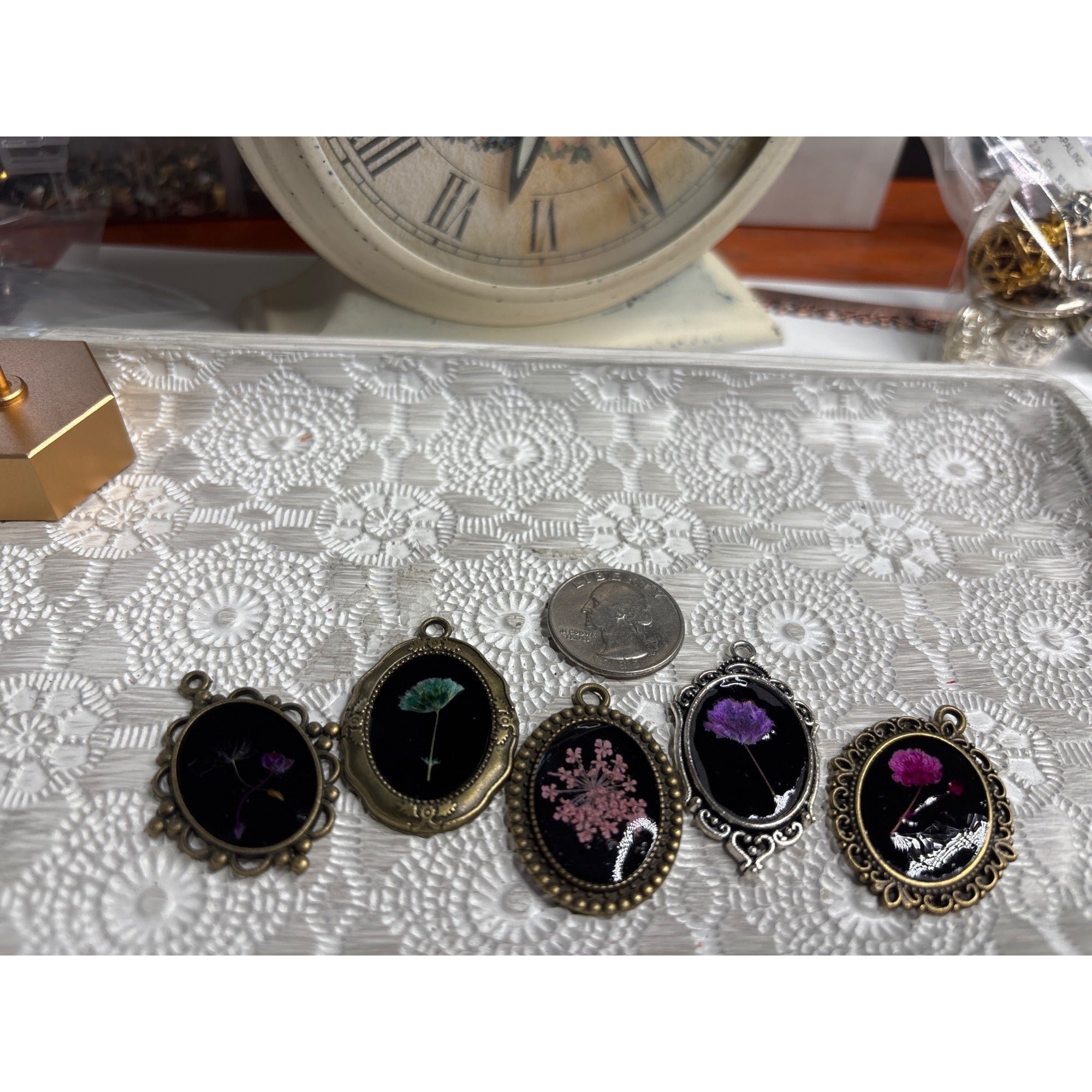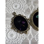 Set Of 5 Oval Dried Flower Pendants Antique Bronze Jewelry Making Resell