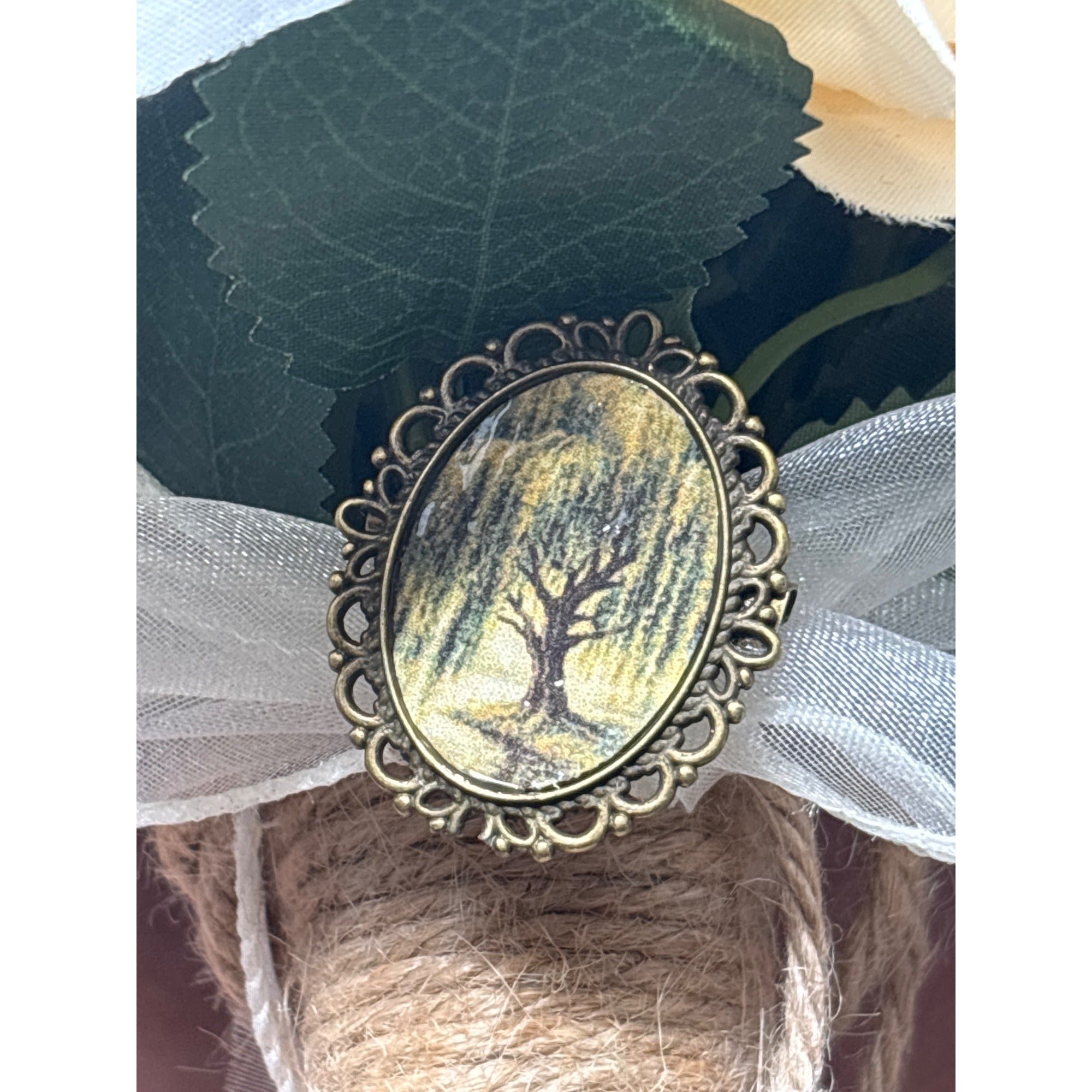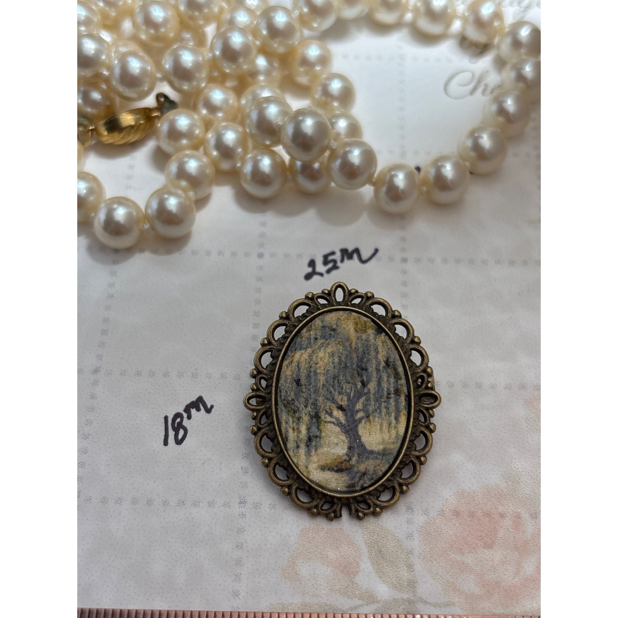 Victorian Inspired Oval Mourning Brooch: Weeping Willow, Antique Brass Frame | 18x25