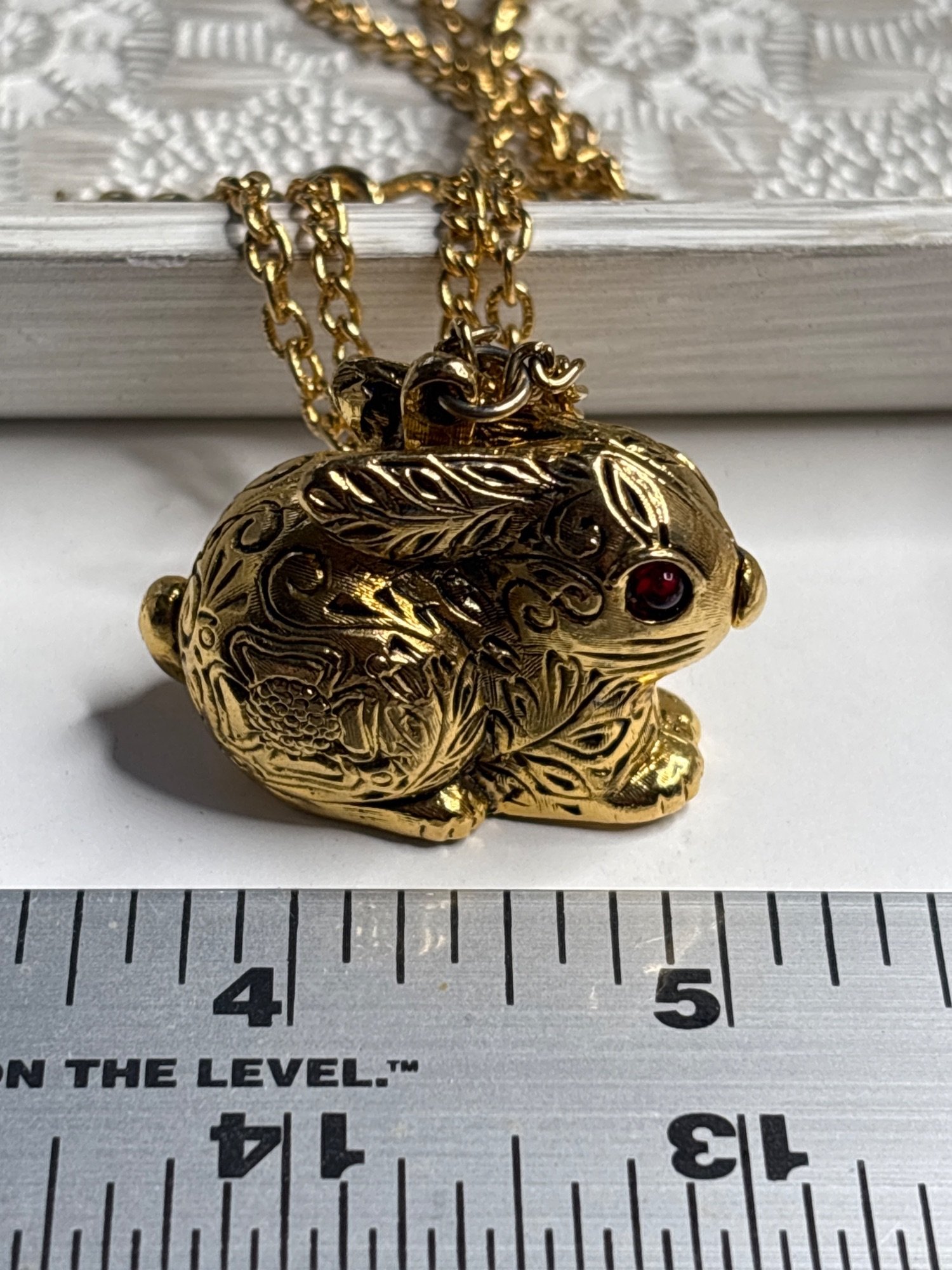 Vintage Gold-Tone Rabbit Locket |Red Crystal Eye | Max Factor Perfume