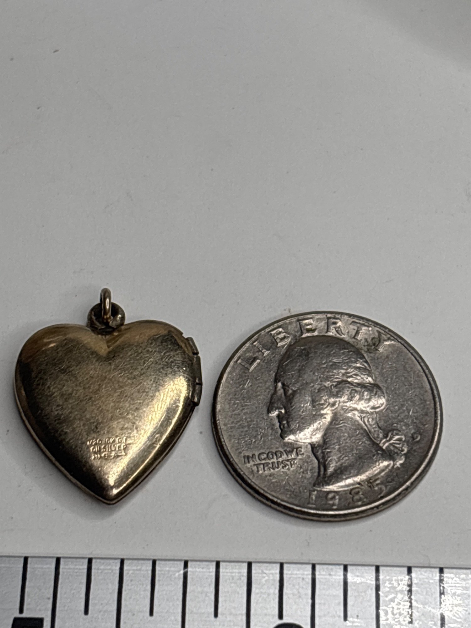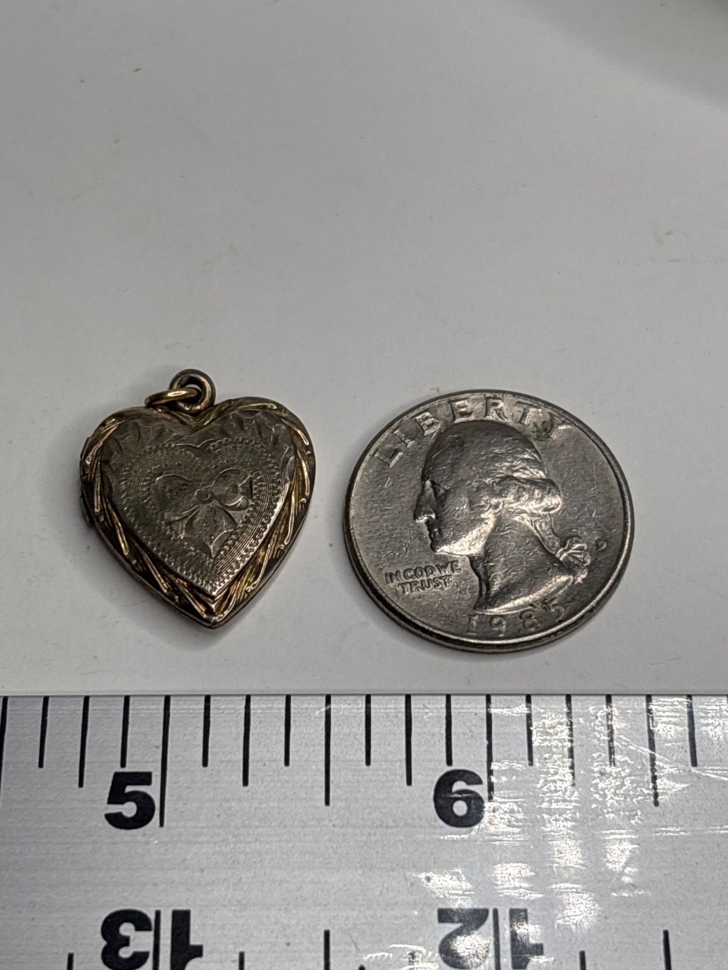 Vintage Heart Locket — 1/20 10K Gold Filled Over Silver, Engraved Bow Detail, Heirloom Keepsake