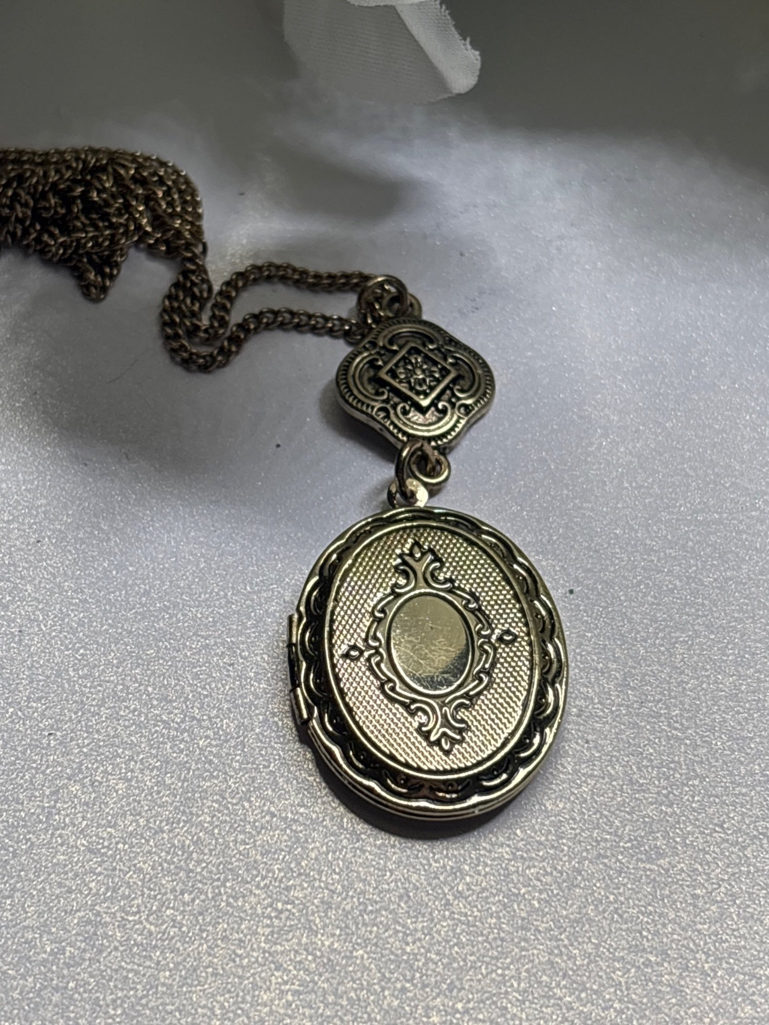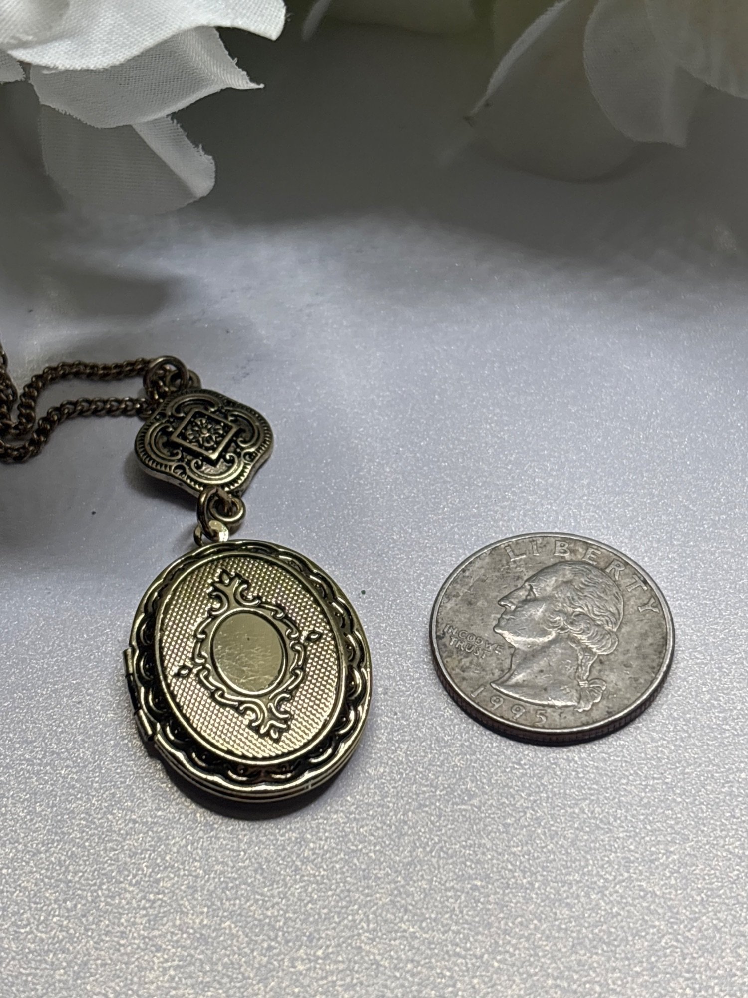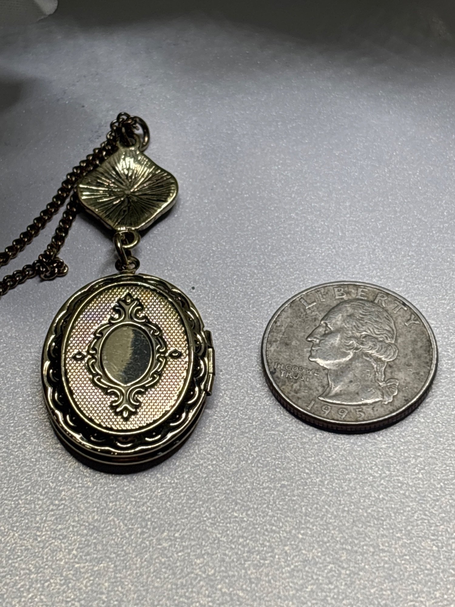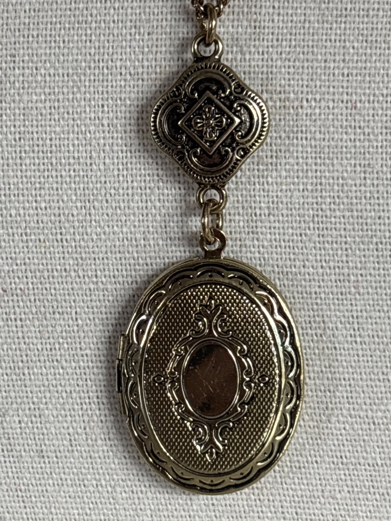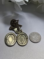 Vintage Oval Goldtone Photo Locket | Filagree Accent | 18x25, 16" chain