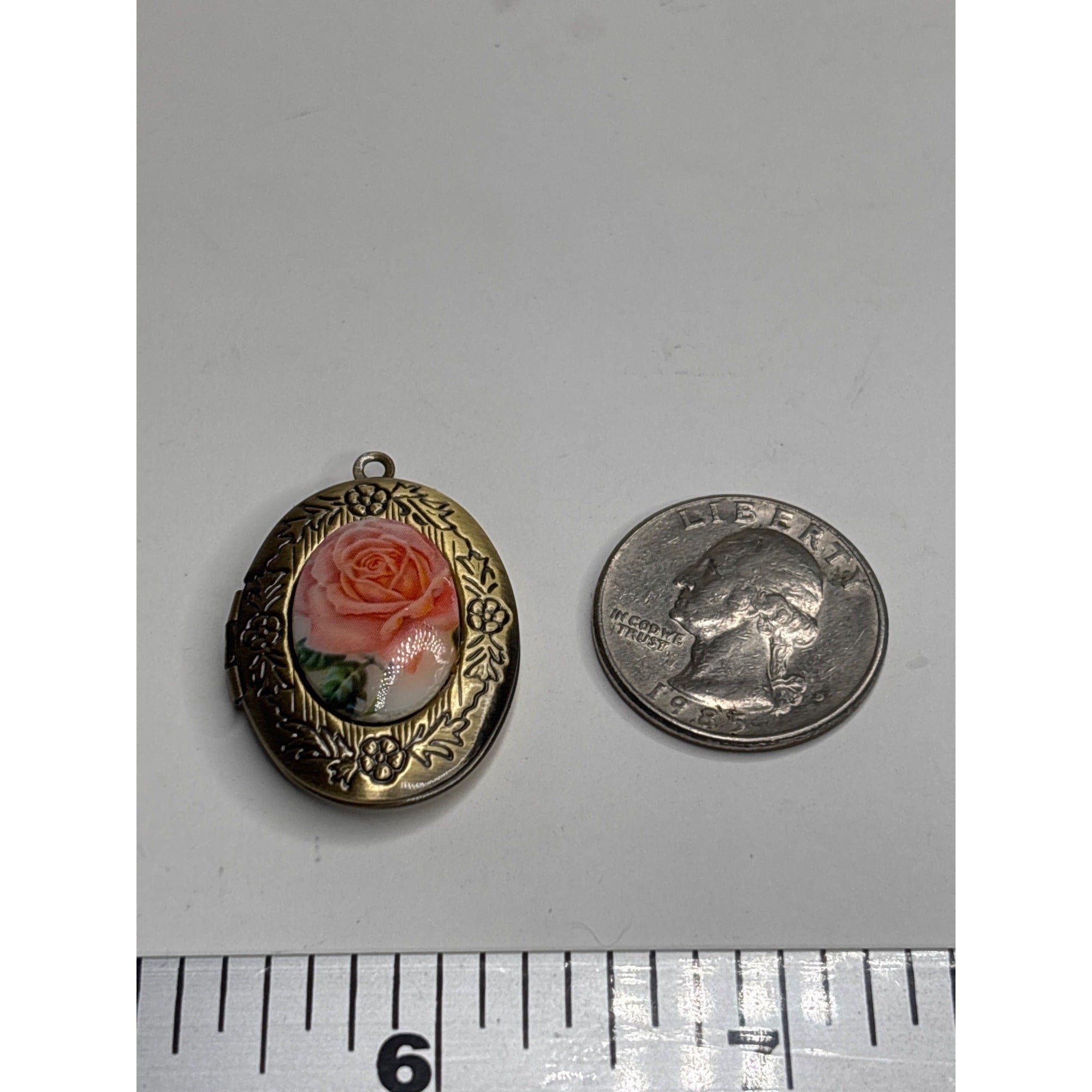 Vintage Rose Oval Locket Necklace — Floral Glass Cameo in Antique Brass, Romantic Heirloom Pendant