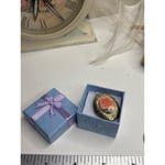 This oval vintage-style locket features a softly detailed pink rose captured beneath domed glass, framed by an antique brass floral setting. Romantic and timeless, it feels like a pressed flower preserved in jewelry form — a keepsake meant to celebrate love, memory, and meaningful moments. A beautiful piece for anniversaries, weddings, or anyone who loves heirloom-inspired jewelry with a gentle story.
