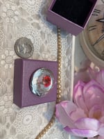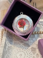 Encased within this vintage silver locket is a single preserved red flower — a quiet emblem of courage. Its vibrant hue captures the strength it takes to grow through difficult seasons and still choose to bloom.