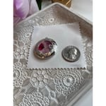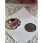 Vintage Silver Round Locket With Dried Pink/Red Flower Centerpiece
