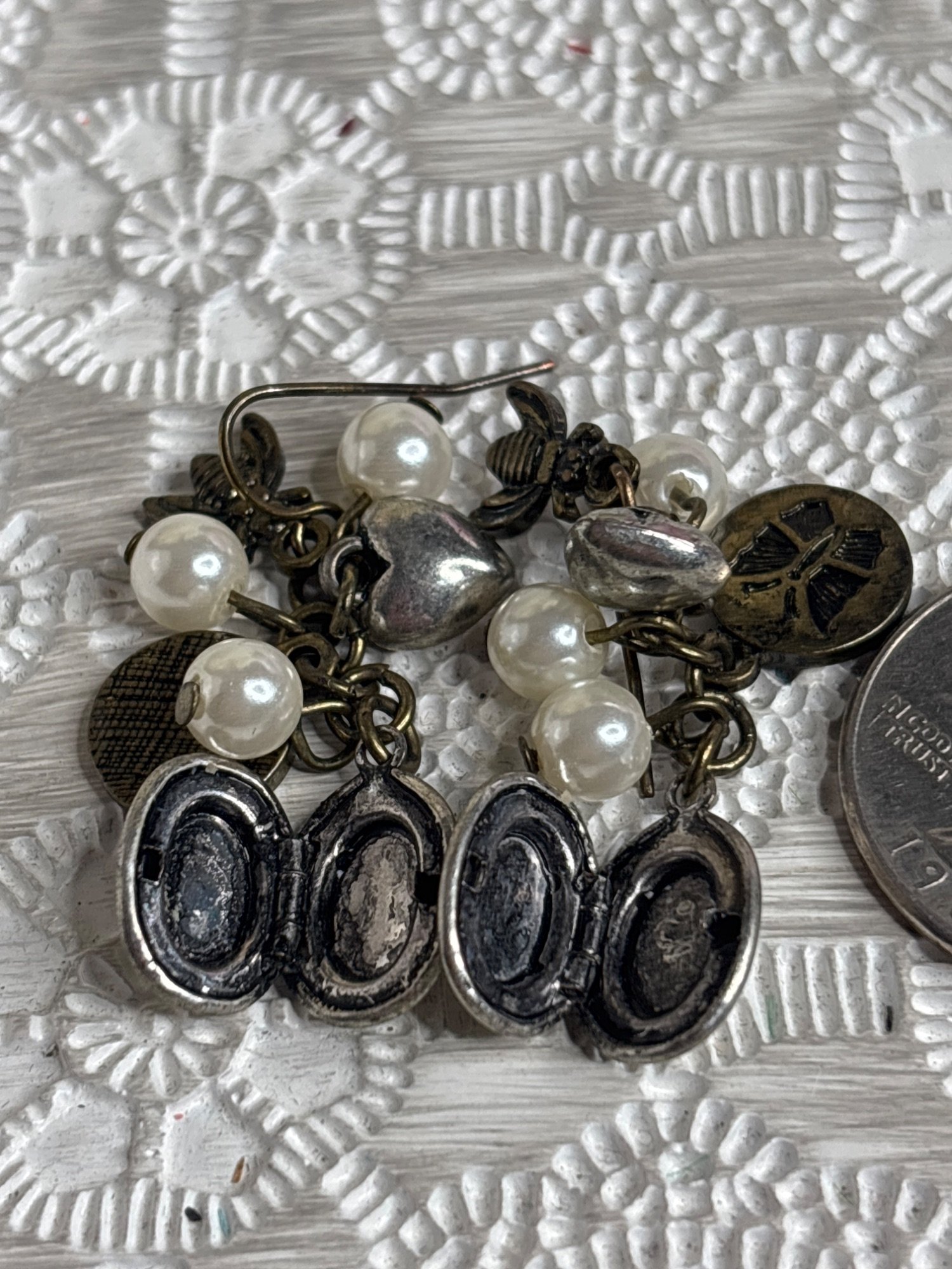 Vintage-Style Locket Earrings With Faux Pearls & Charms Unique